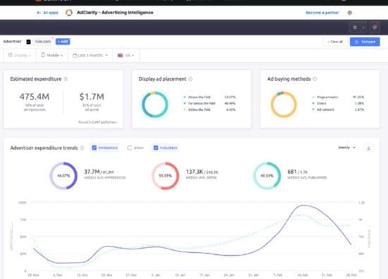 AdClarity’s fast facts Key features: End-to-end digital advertising intelligence technology, centralized dashboard, exportable reports and global reach. Pricing: Starts at