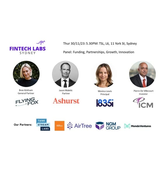 Partners for FinTech Labs are: Tank Stream Labs, Australian FinTech, AirTree, 1835i, Mondo Ventures, NGM Group (the merged entity of Greater Sydney Bank and Newcastle Permanent Building Society).